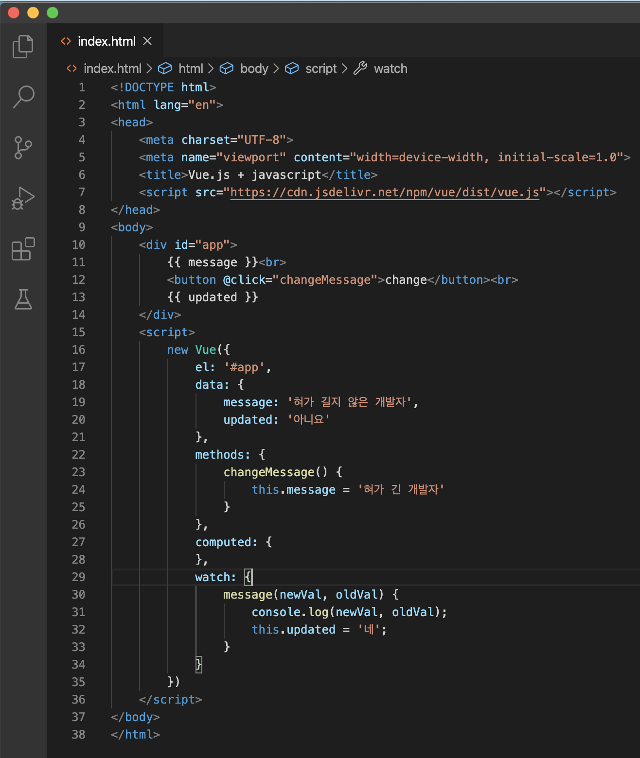 watch속성으로 변수의 값이 변하는지 알 수 있다.