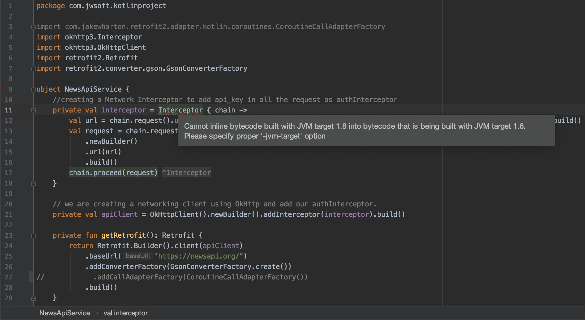 //creating a Network Interceptor to add api_key in all the request as authInterceptor
