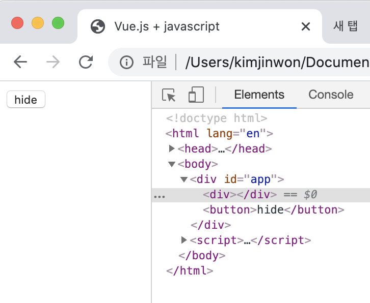 v-if 는 <div></div> 태그 안에 내용이 없어져 화면에 안보이게됨.