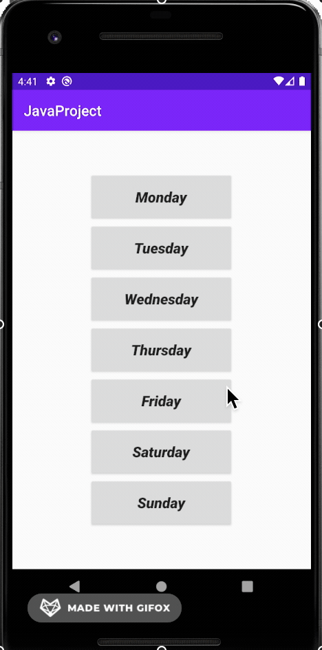 Toast.makeText(getApplicationContext(), day.toString(), Toast.LENGTH_SHORT).show();
