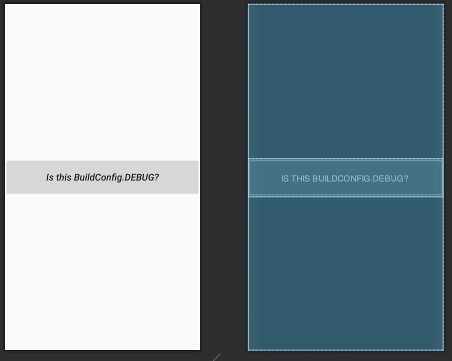 Toast.makeText(applicationContext, "BuildConfig.DEBUG", Toast.LENGTH_SHORT).show()