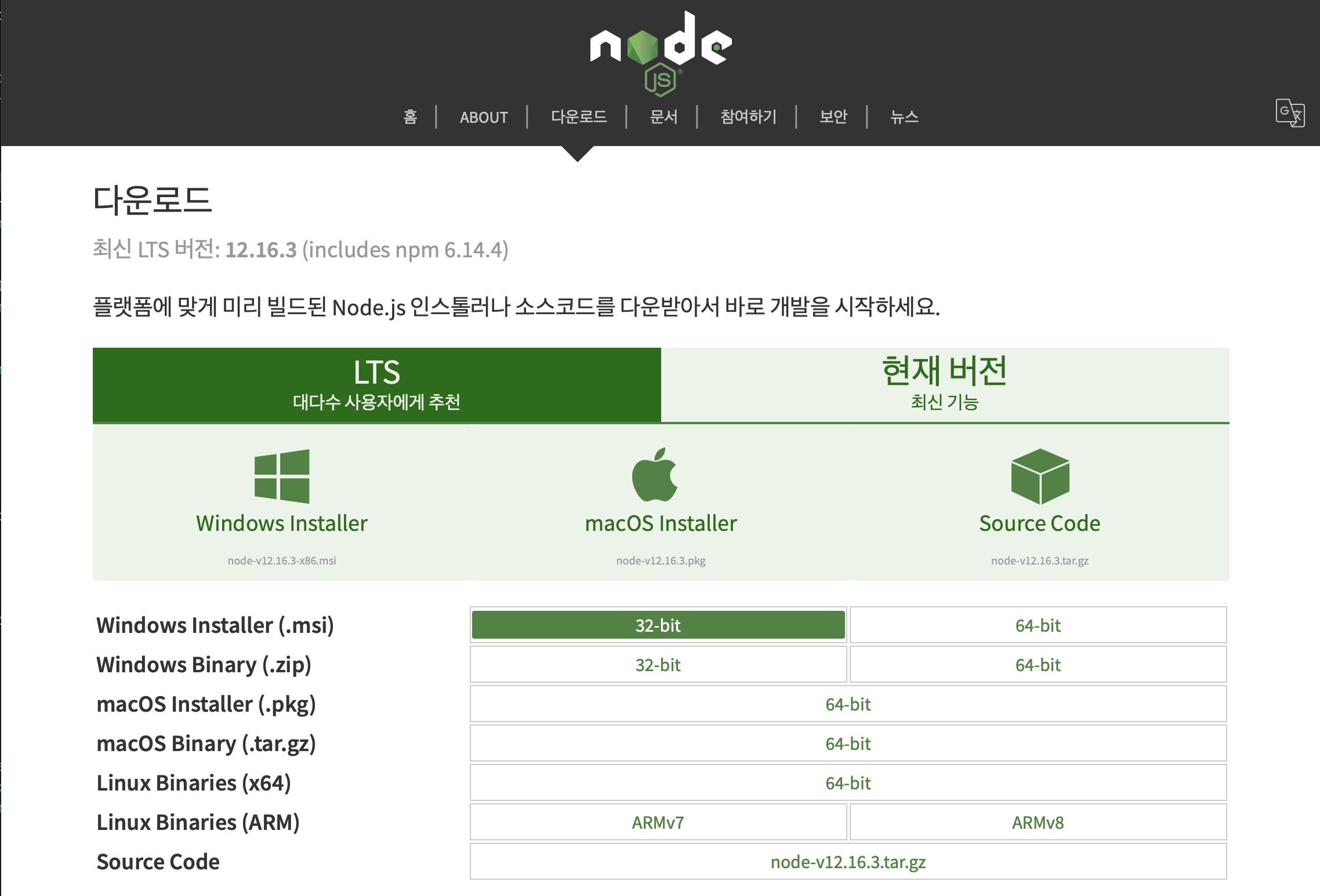 다운로드 | Node.js