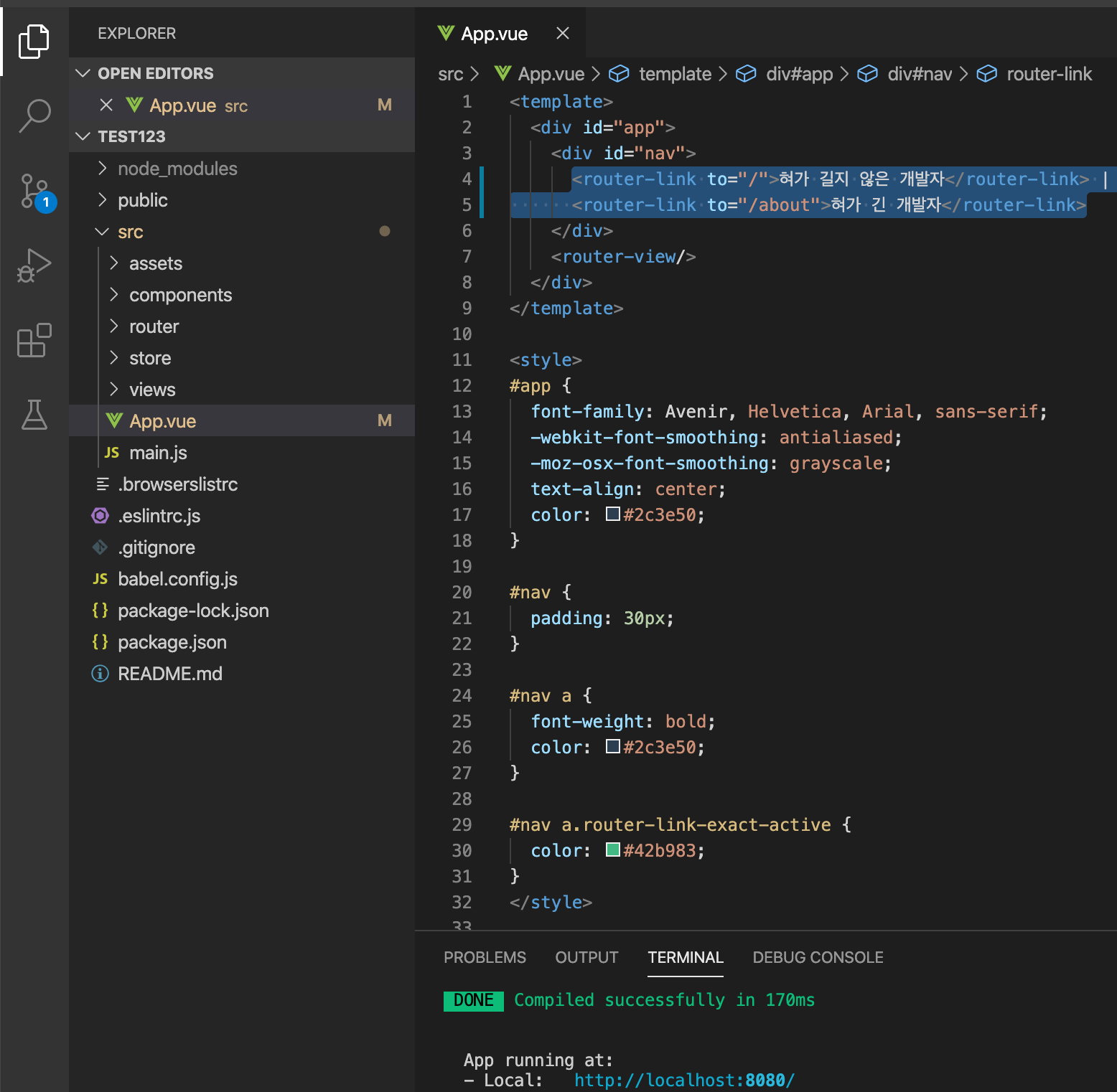 App.vue에서 수정 후 저장
