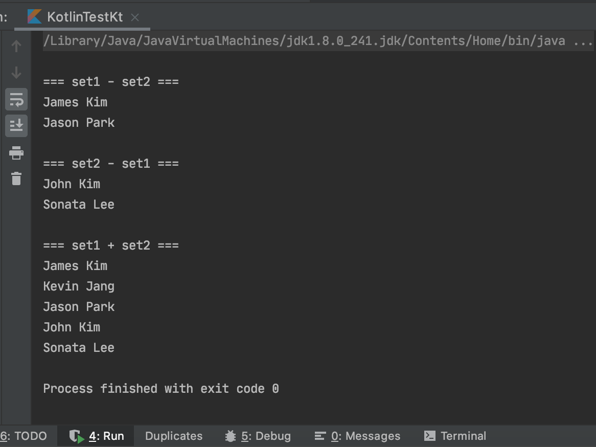코틀린은 LinkedHashSet 끼리 덧셈 뺄셈 가능.