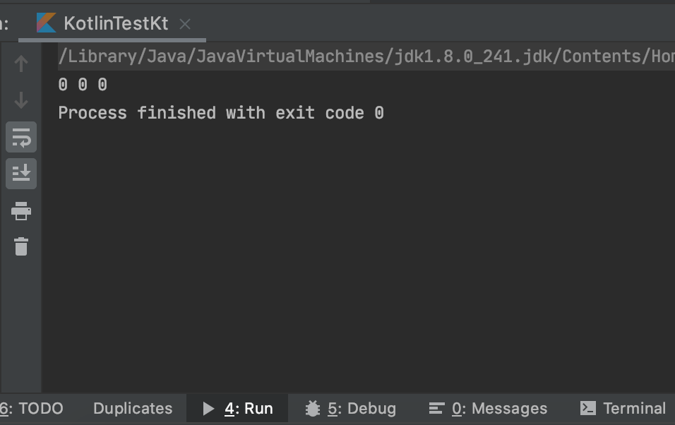 for (int in intArray) { // 초기화 안하면 자동으로 0 들어감