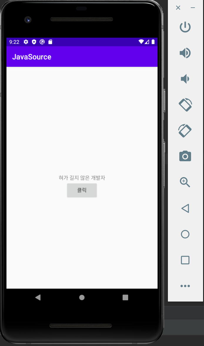 버튼 클릭하면 "Hello World!" 에서 "혀가 길지 않은 개발자" 로 바뀜.