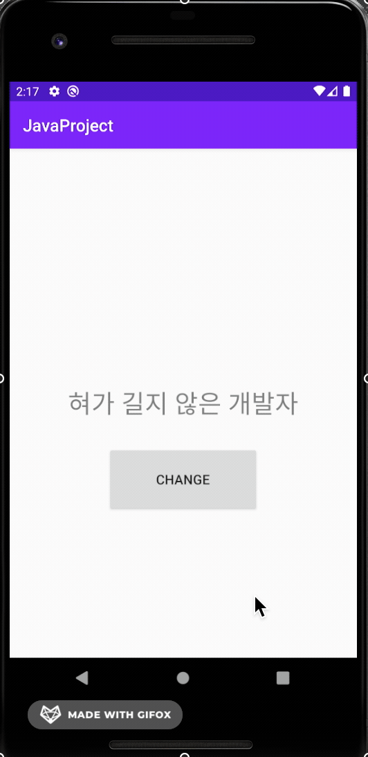 android:text="혀가 길지 않은 개발자"