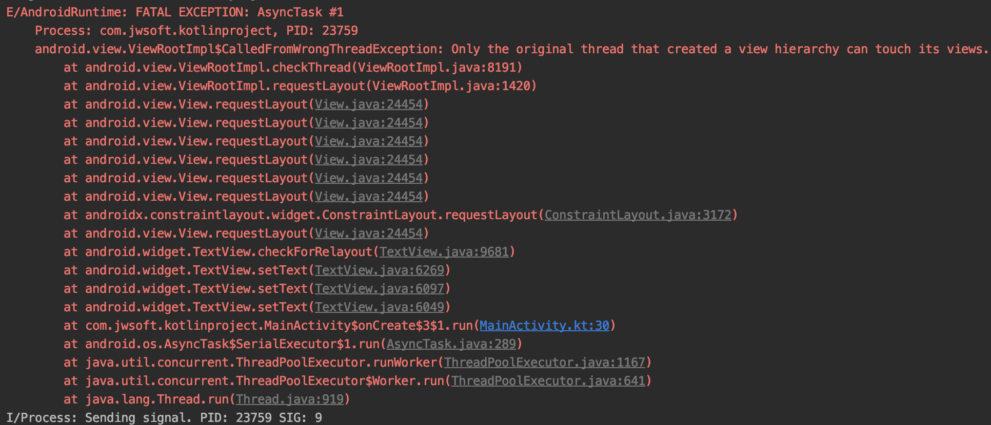 AsyncTask.execute() 버튼 클릭 후 에러 발생!