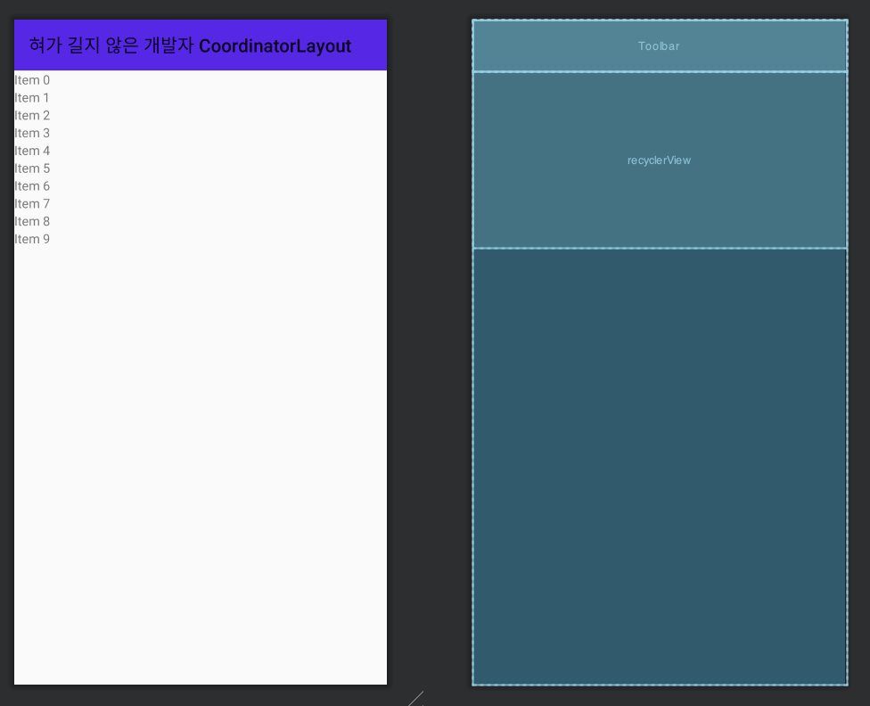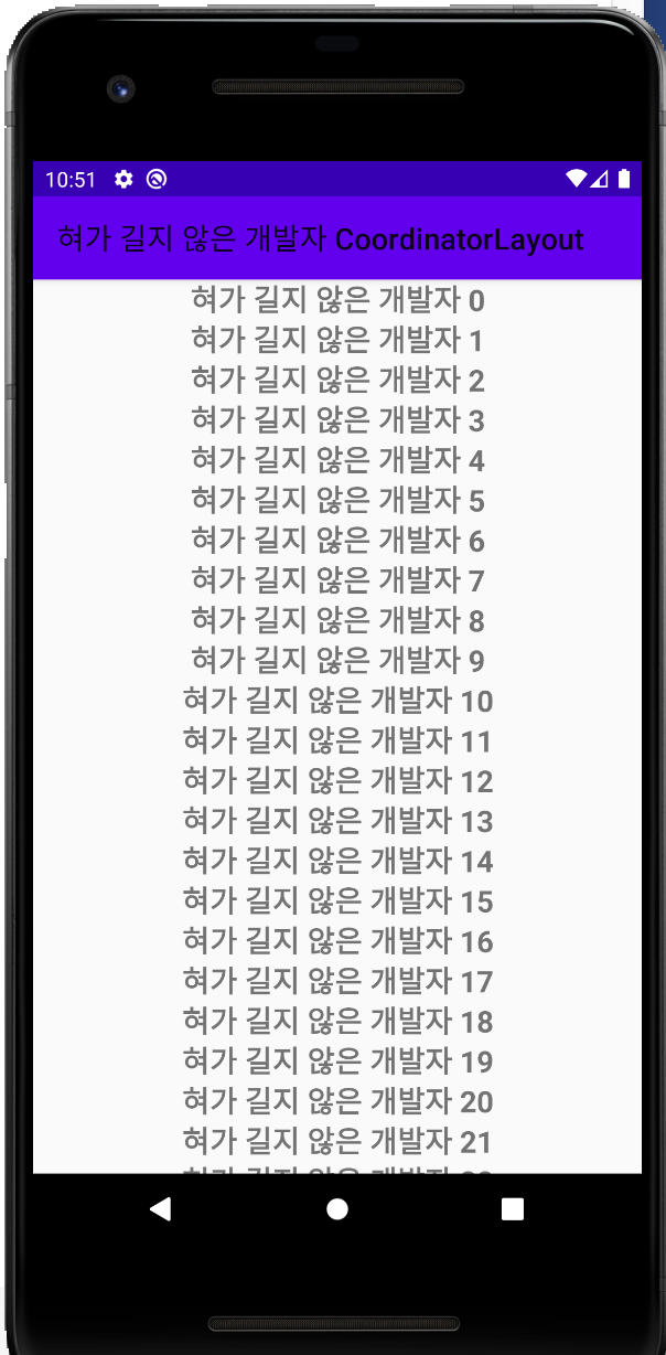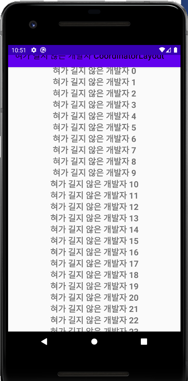 혀가 길지 않은 개발자 2020. 7. 3. 22:38CoordinatorLayout + AppBarLayout + Toolbar + RecyclerView