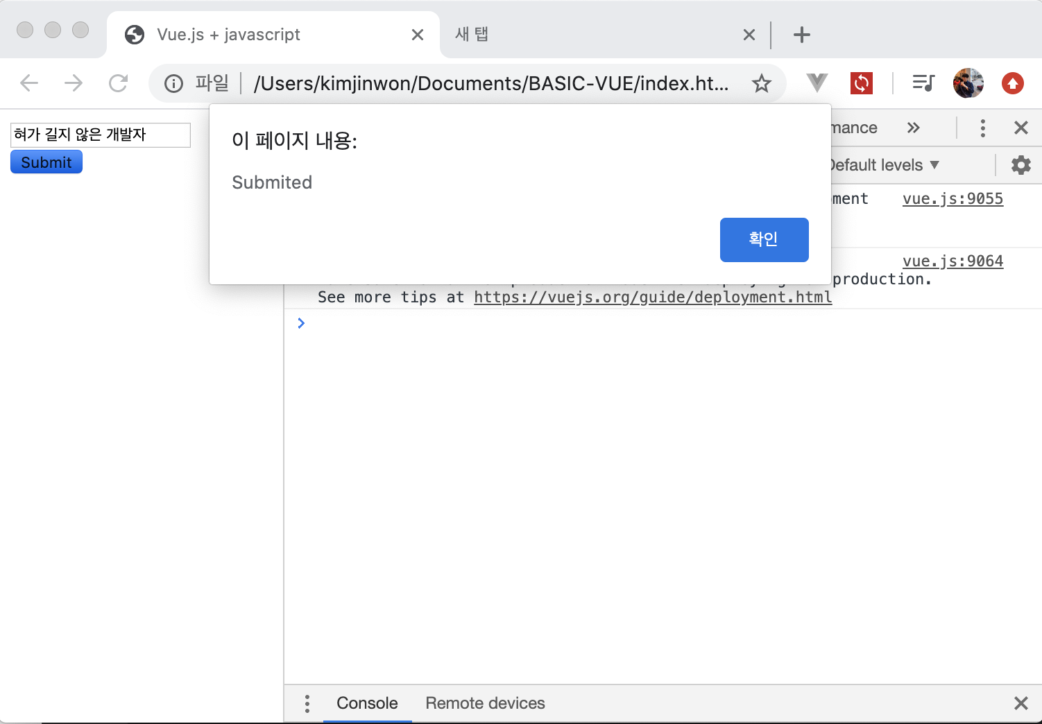 console.log()를 사용하면 chrome -> command + F12 -> Console창에 내용이 나옴.