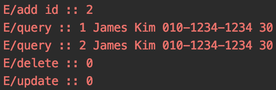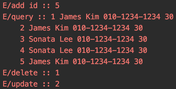 String strQuery = id + " " + name + " " + phone + " " + age;
