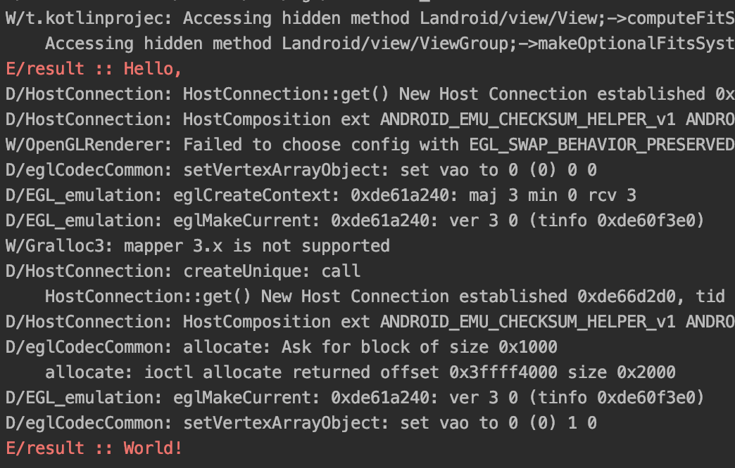 Log.e("result : ", "World!")