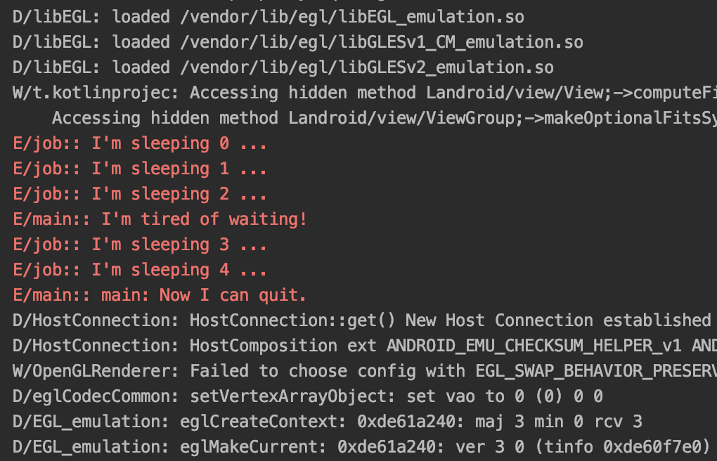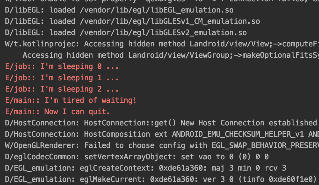 Log.e("job: ", "I'm sleeping $it ...")