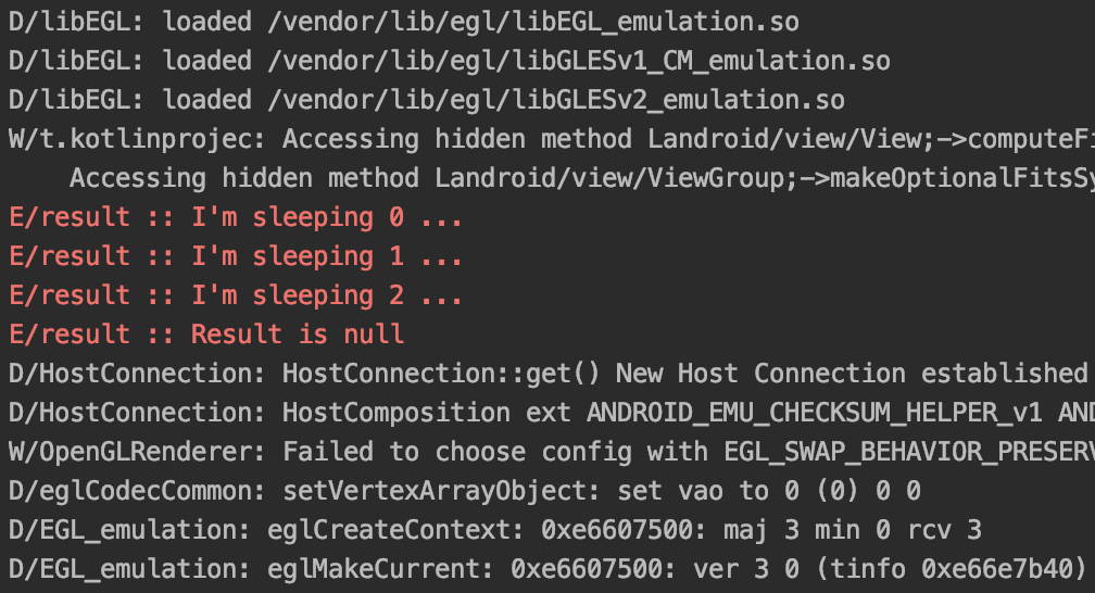 Log.e("result : ", "I'm sleeping $it ...")