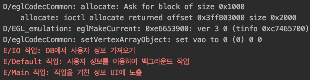 Log.e("Main 작업", "작업을 거친 정보 UI에 노출")