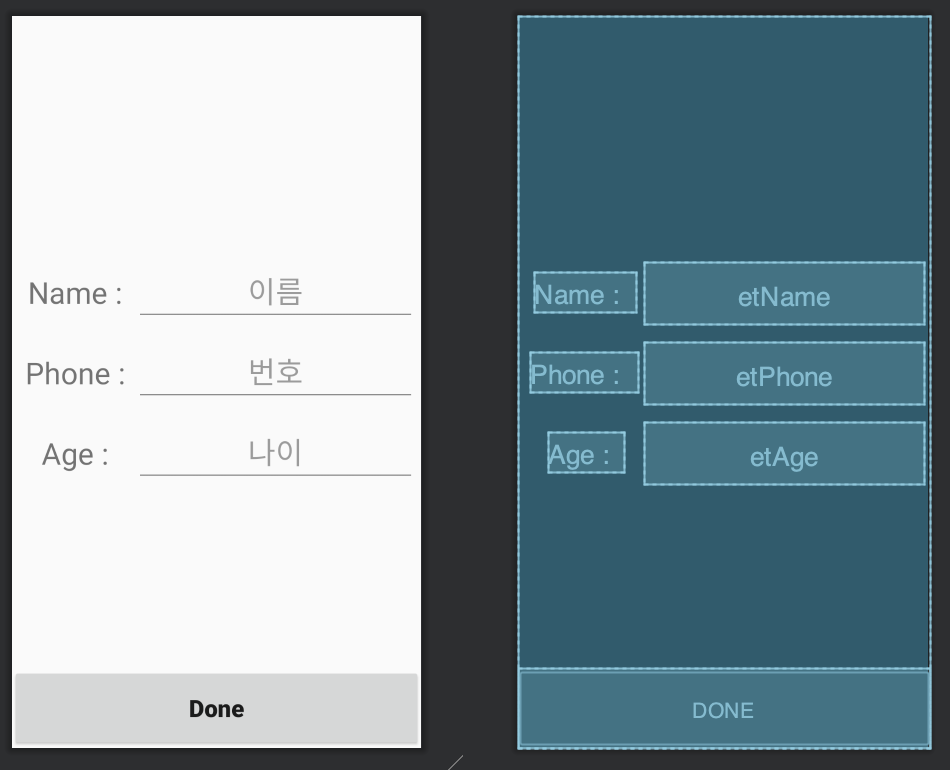 android:hint="이름"