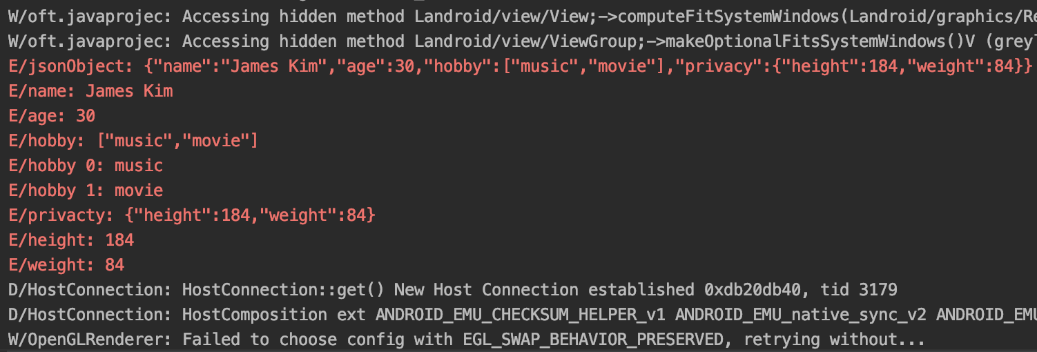 jsonObject.put("name", "James Kim");